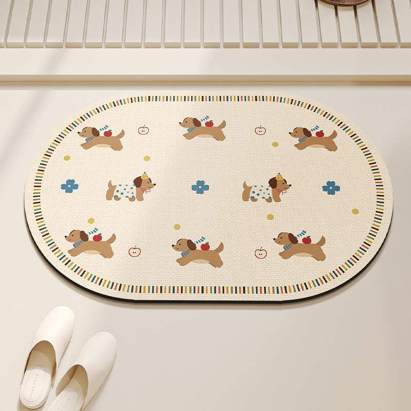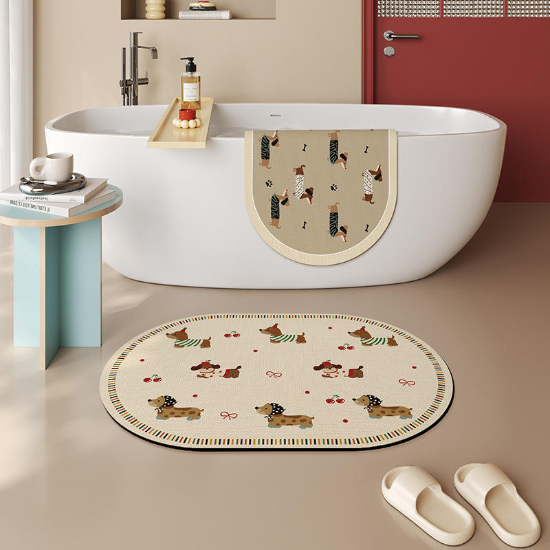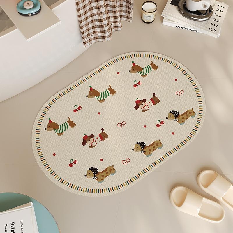 Sausage Squad Oval Bath Mat Cute Cartoon Dogs Non Slip For Bathroom Kitchen Restaurant Entrance