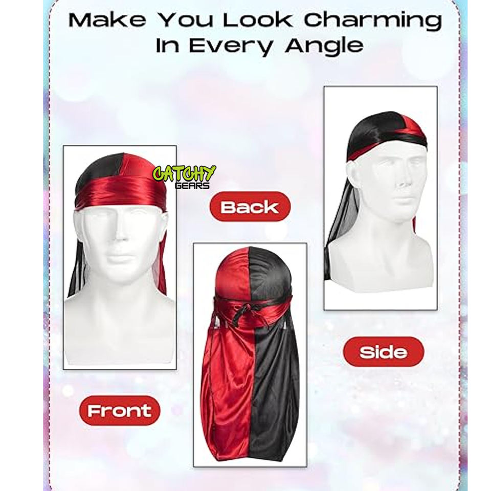 Savings Spotlight Popular Silky Durag Two Tone Long Tail Du Rags Hip Hop Rapper Doo Rag Sleep Hats
