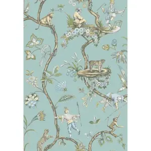 Scalamandre Chinoiserie Exotique Self-Adhesive Wallpaper Rolls Modern Damask Design Blue for Living Room Hotel Waterproof