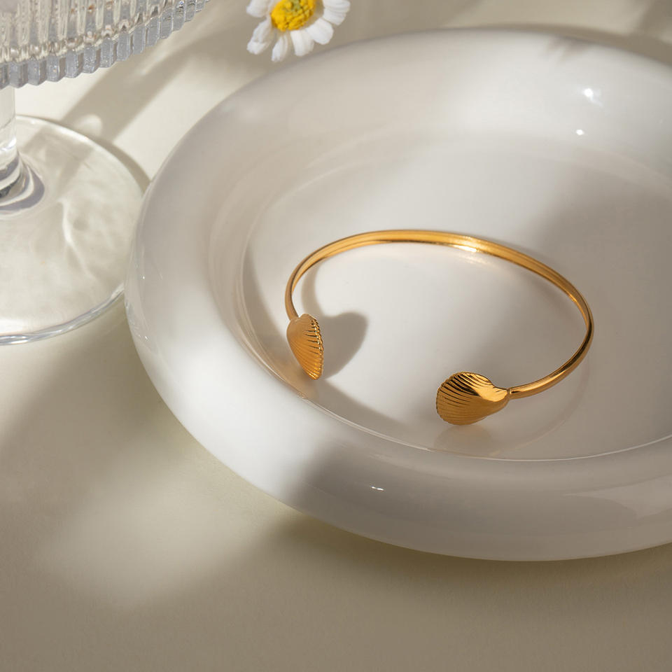 Scallop Shell Open Cuff Bracelet Gold Plated Zinc Alloy Unisex Jewelry 2024 Style