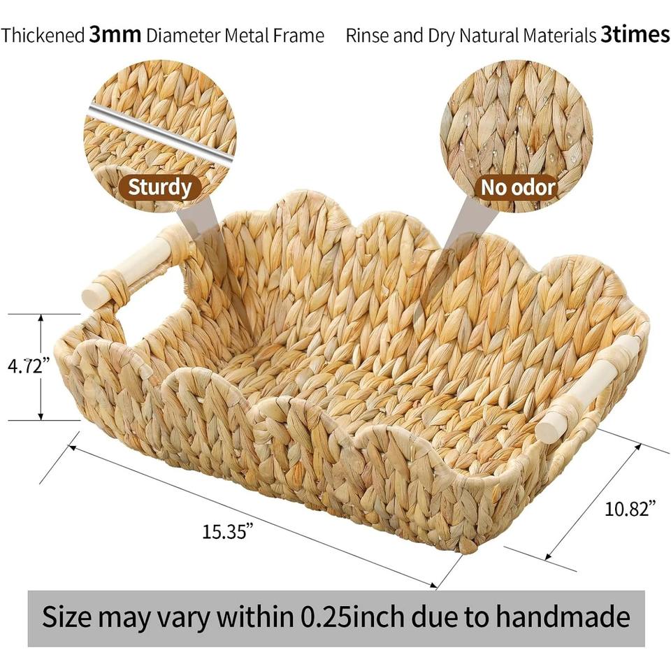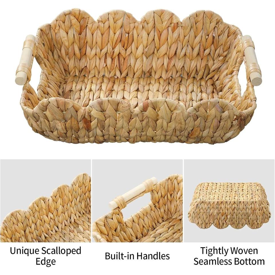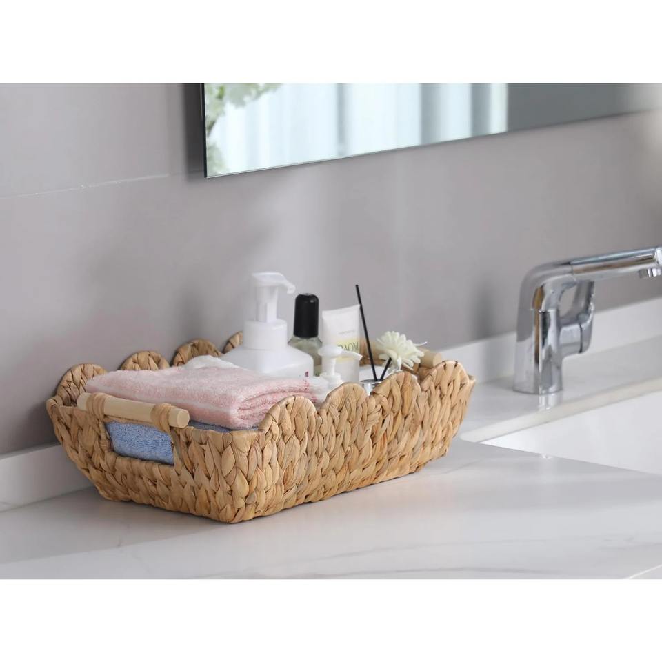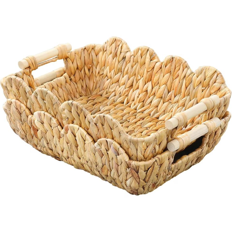 Scalloped Basket with Wooden Handle Handmade Storage Basket Wholesale eco-friendly Made in Vietnam