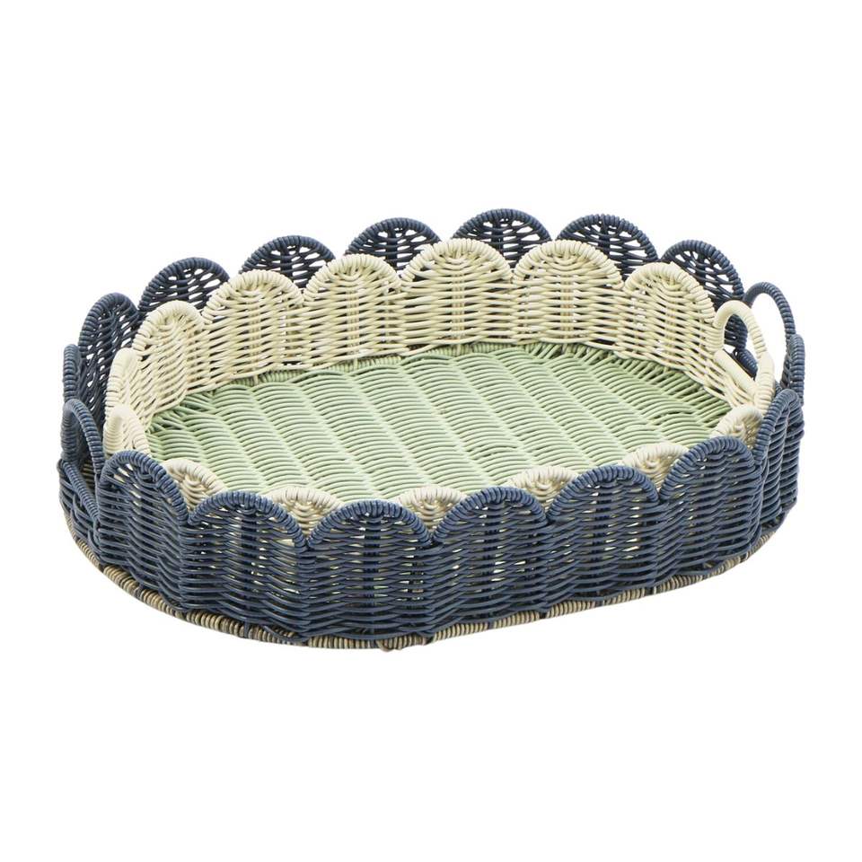 Scalloped Wicker Rattan Serving Tray Mix Color With Handle, Luxury Trays, Jewelry Display Or Food Serving Wholesale Vietnam