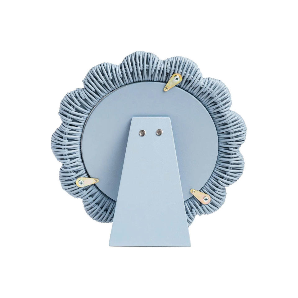 Scalloped Woven Round Rattan Photo Frame - Aesthetic Coastal Blue Picture Frame for Home Decor