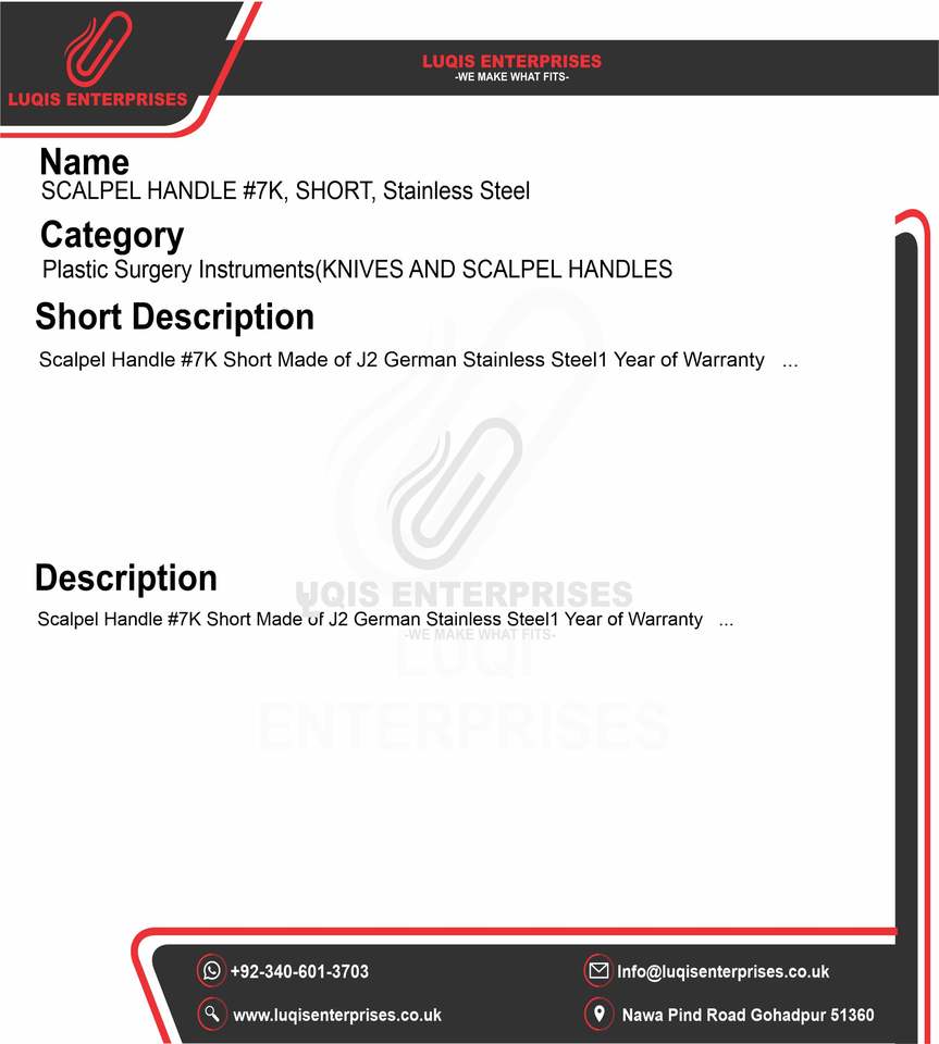 Scalpel Handle #7K Short Stainless Steel Surgical Knife Handle Reusable Autoclavable Medical Instrument