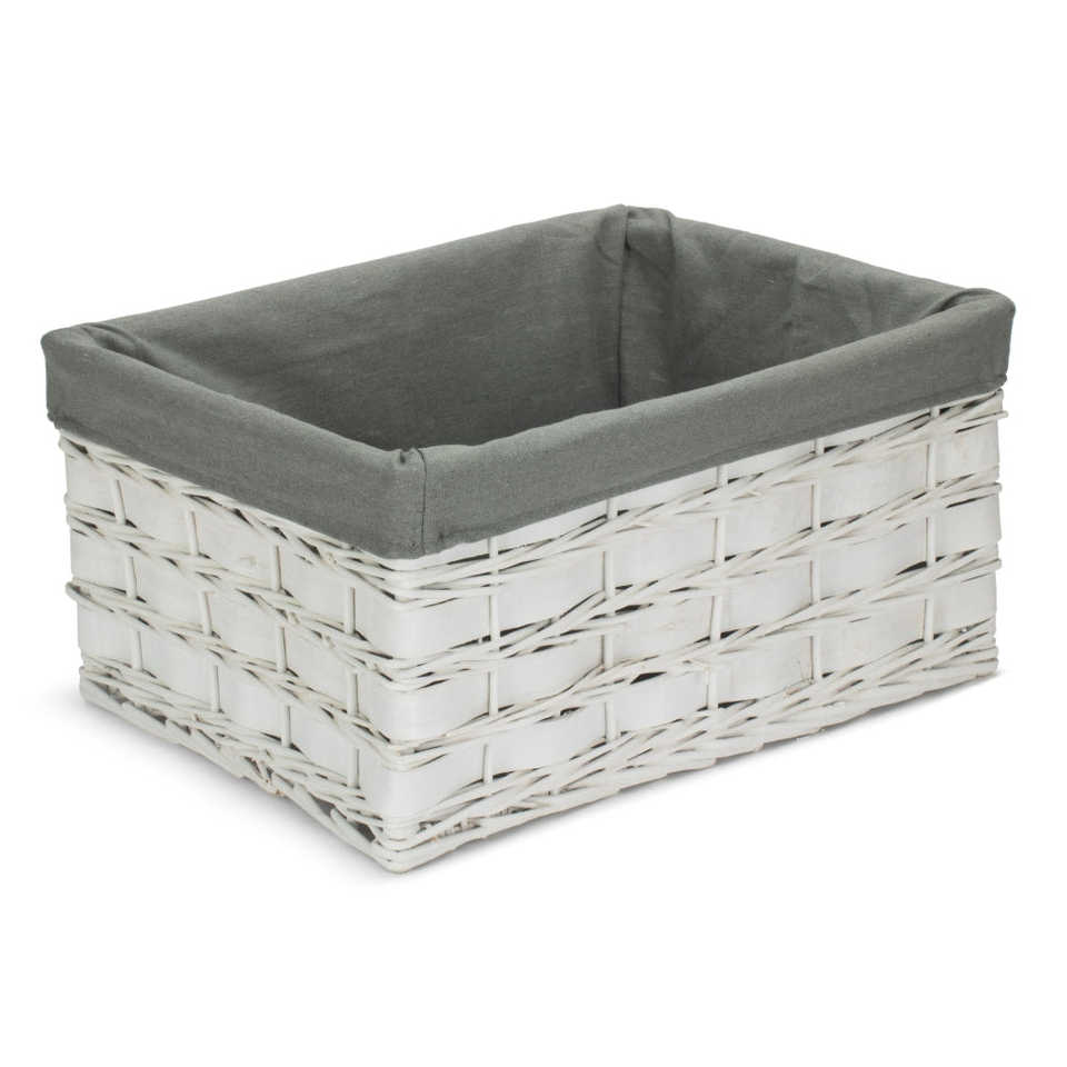Scandi Storage Basket in Whitewash Grey with Liner PP Rattan Style for Household Outdoor Toys Food in Cartons