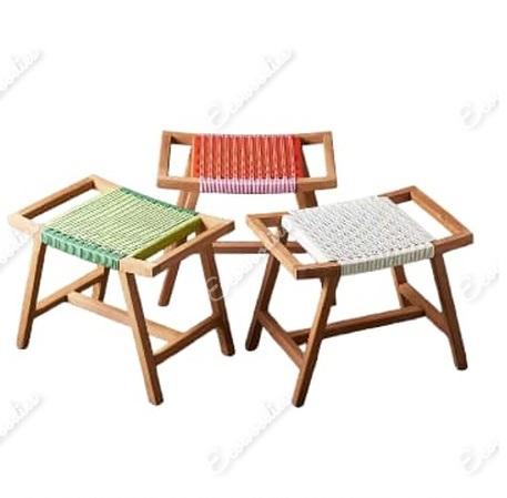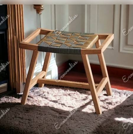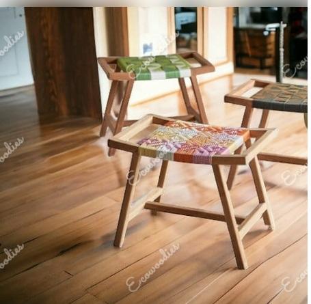 Scandinavian Charm. Crafted Solid Teakwood Stool with Melamine Matt Finish Hasthshilpa Woven Stool for Event Bone Inlay Console