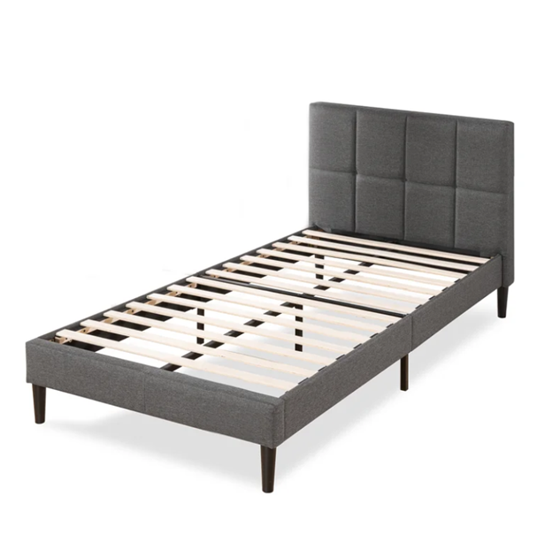 Scandinavian Modern Luxury Bedroom Furniture Set Solid Wood Bed with Rectangular Black Grid Cushioned Headboard Made in China