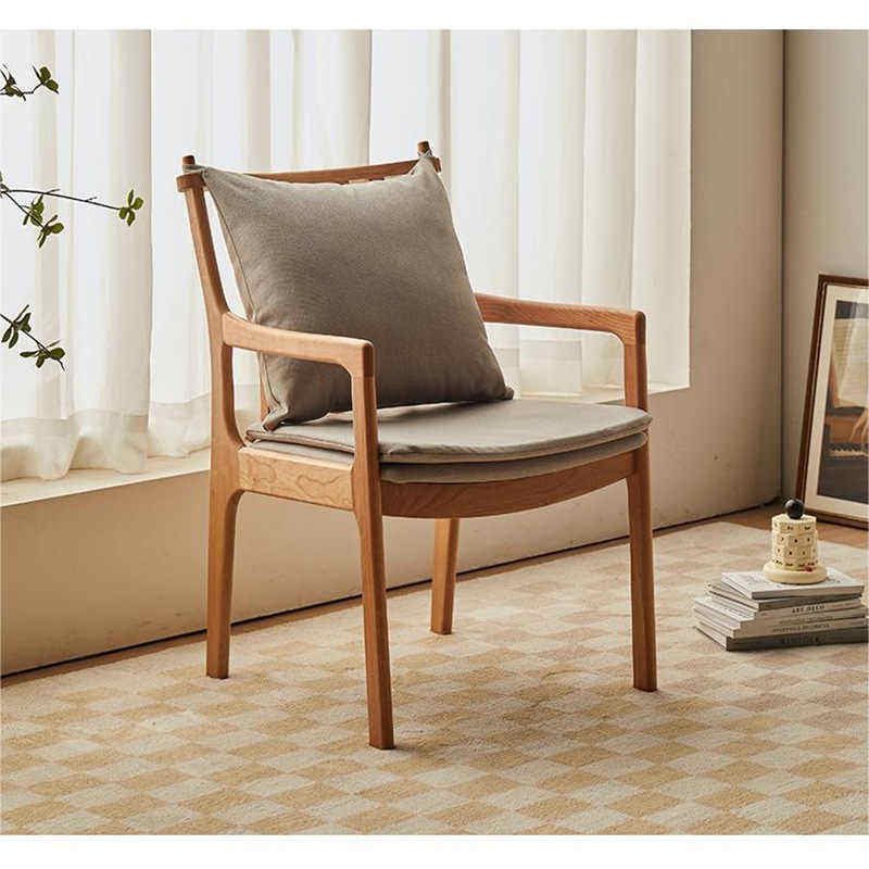 Scandinavian Solid Wood Armchair Soft Linen Cushion Designed for Dining and Study Rooms