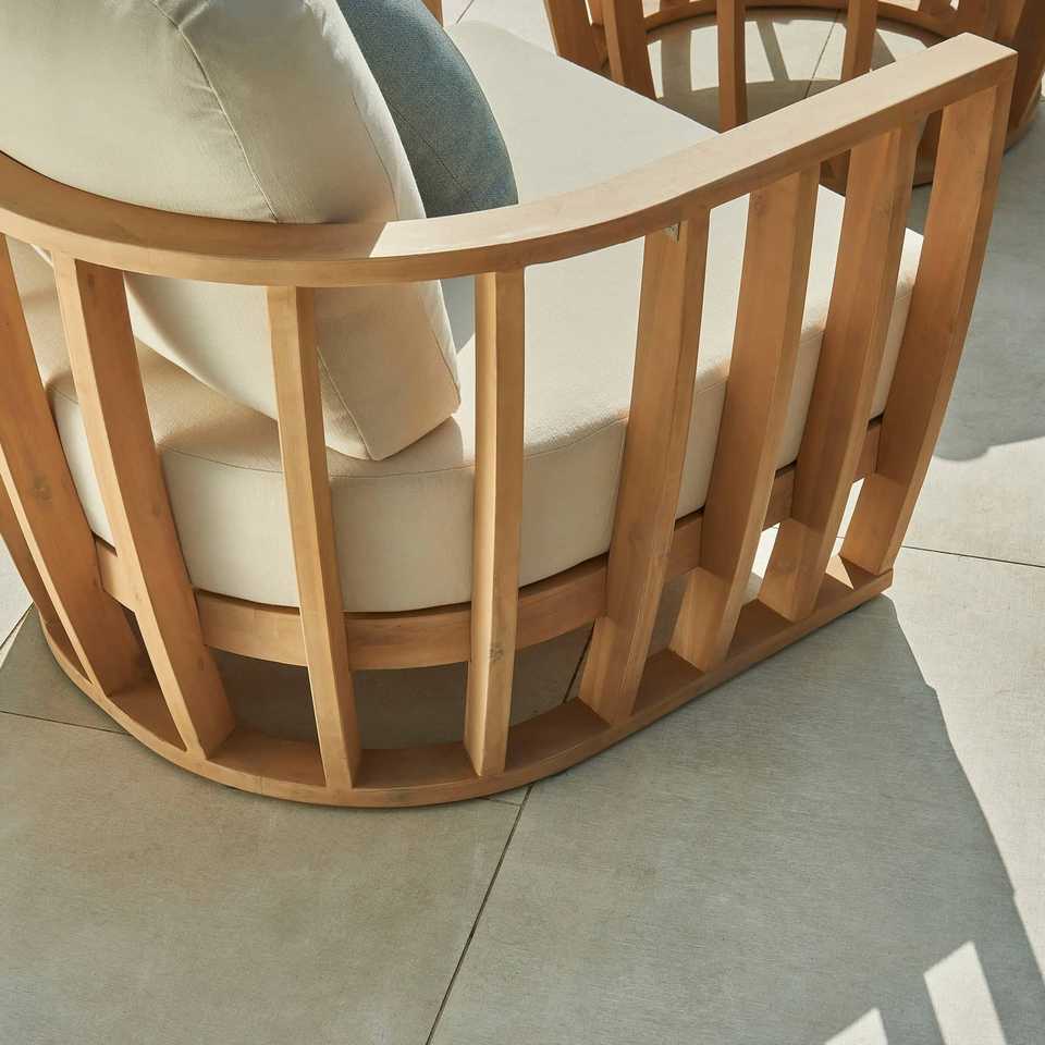 "Scandinavian Style Outdoor Lounge Set with Solid Teak Wood Frame Beige Cushions and Round Coffee Table Elegant Garden Furniture
