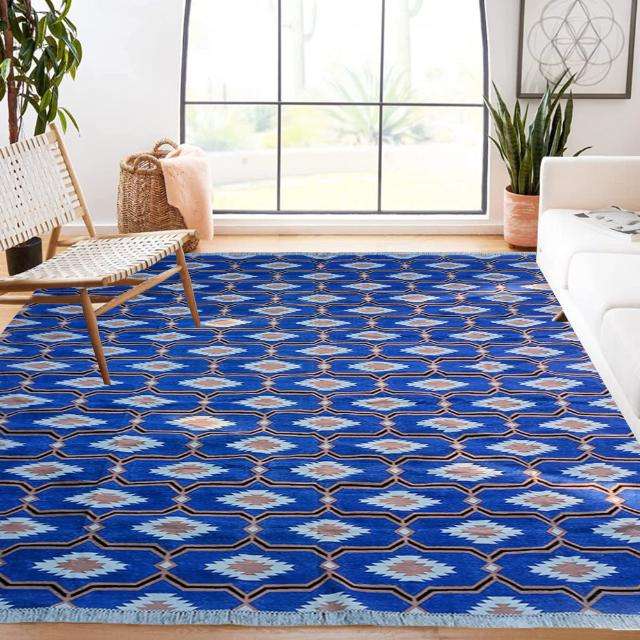 Scandinavian Themed 8x10 Ft Cotton Dhurrie Kilim Mat Sustainable Neutral Area Rug for Natural Living Spaces-055