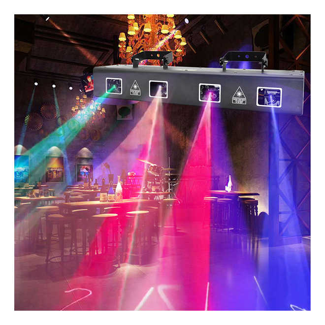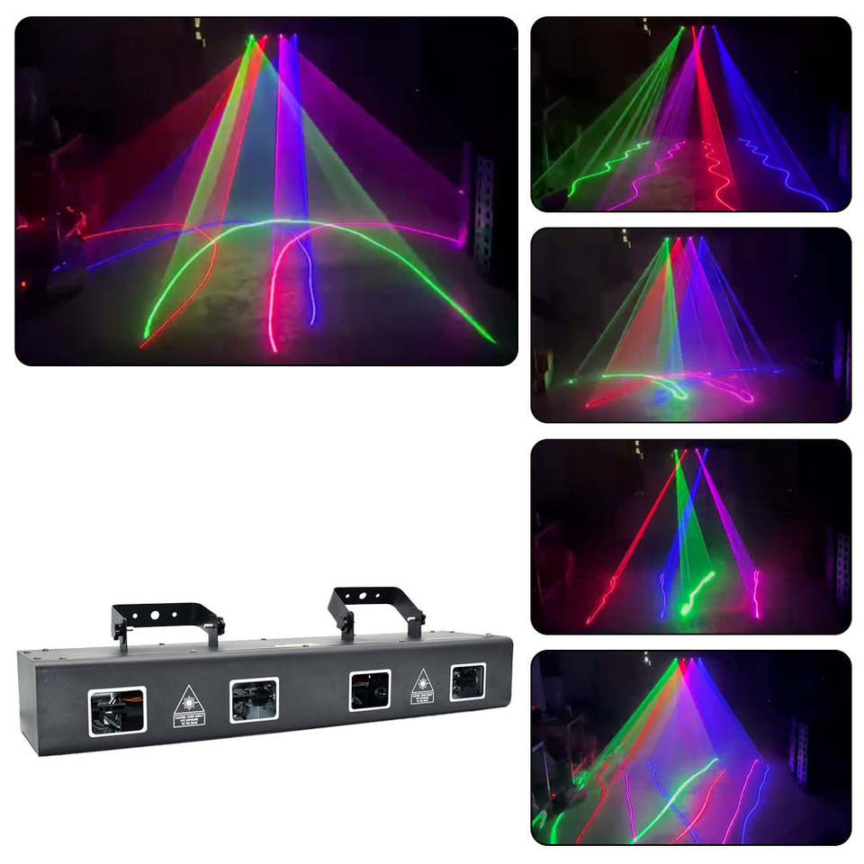 Four-Head Full RGB Disco Stage Laser Light Night Club KTV DMX Control Blue Red Green Yellow Emitted Colors