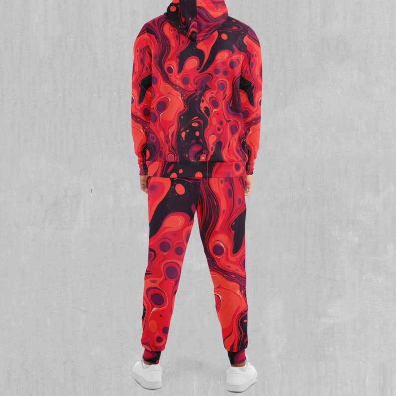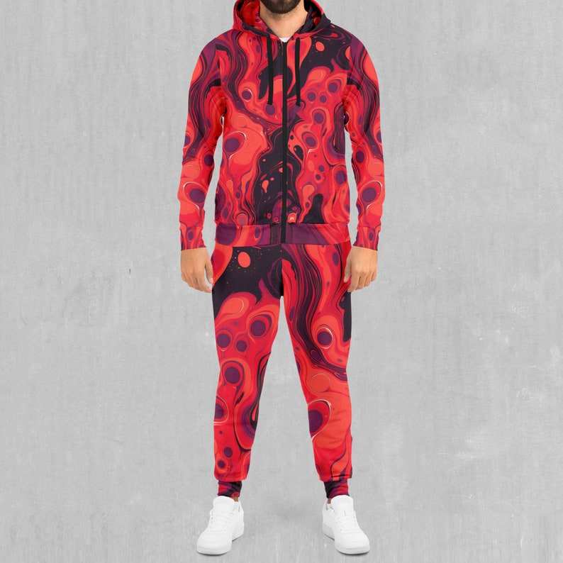 Scarlet Fusion Psychedelic Printed 100% Cotton Winter Breathable Lightweight Zip-Up Hoodie and Joggers Set Tracksuit