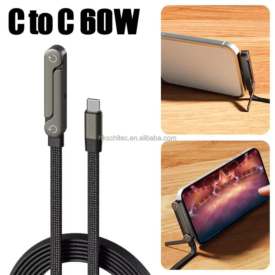 Schitec New Design zine alloy 60W USB C Cable 1m with Adjustable phone stand charging cable for mobile phone