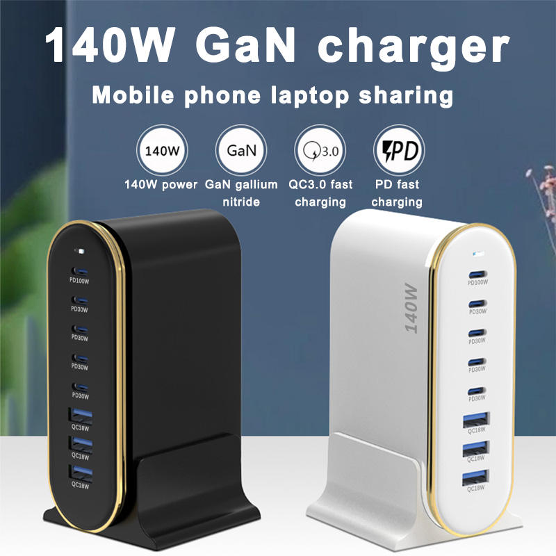 Schitec OEM 140W Gan Charger Super Speed Charging 8 Ports Desk Charger for Laptop and Other Mobile Device