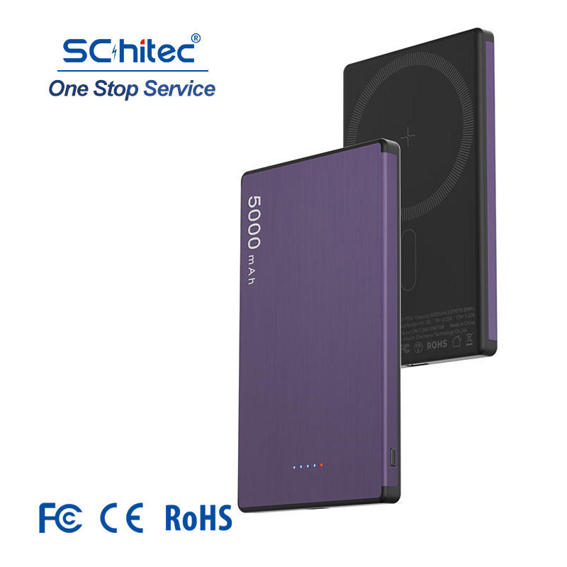 Schitec Slim Portable Magnetic Power Bank 5000mah fast safe charging Ultra small Travel charger for iphone samsung mobile device