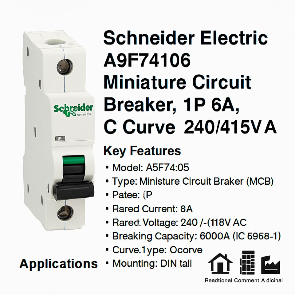 Product name:Schneider Electric A9F74106 Miniature Circuit Breaker 1P 6A C Curve