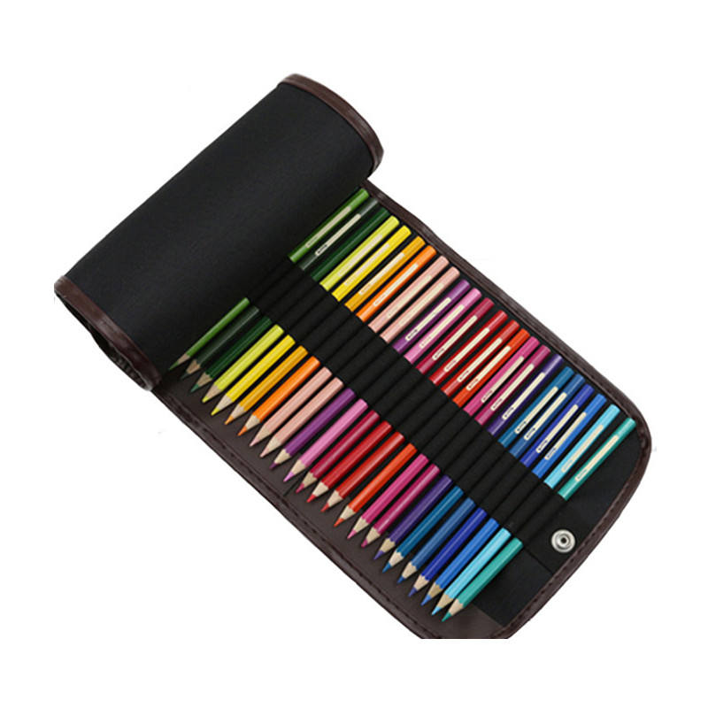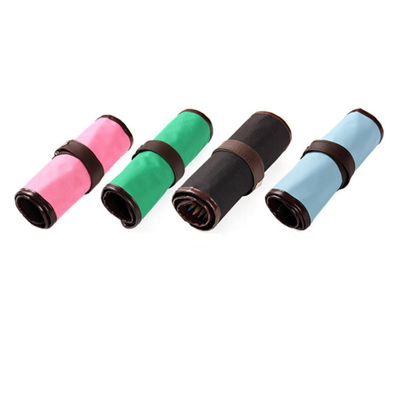 School Supplies Roll Case Canvas Pencil Bag Pouch with Pen Wrap and Makeup Brush Storage Convenient Roll-up Design