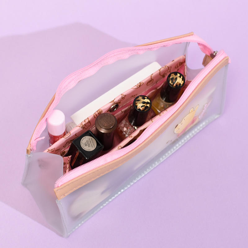 School Translucent Brushed Laminated Leather Stationery Pencil Pouch See-Through Pencil Case