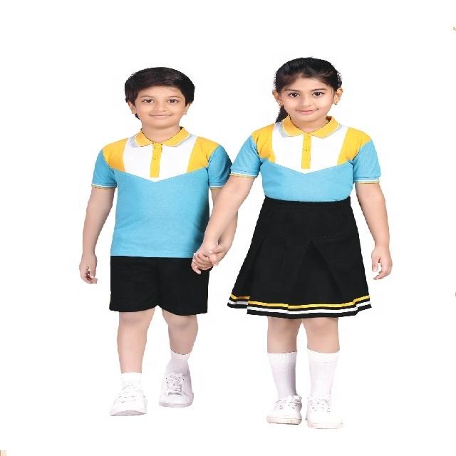 School Uniforms Manufacturer Custom Logo Boys and Girls T Shirt With Shorts and Skirts Set