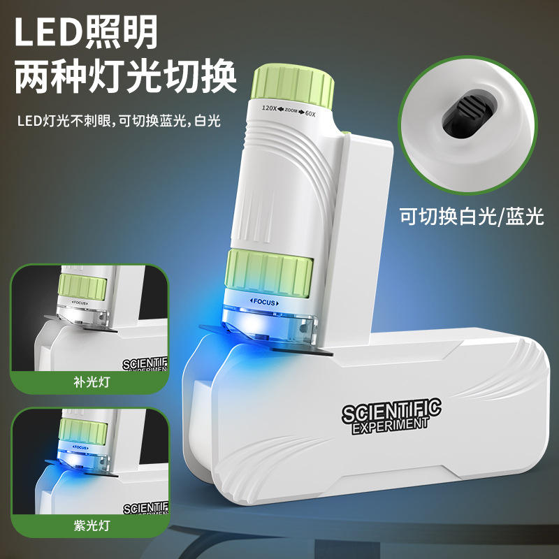 Scientific Experiment Portable Handheld Microscope 60-120X LED Light Battery Powered Teaching Science Toy for Students