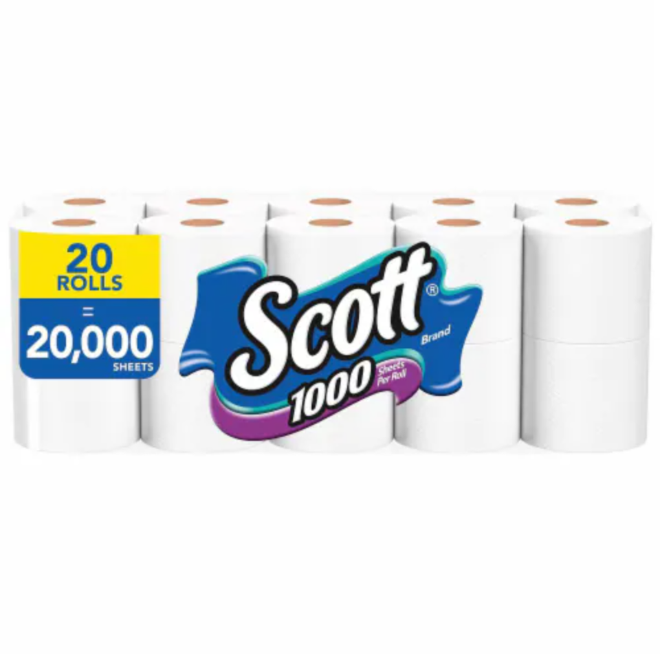 Scott 1000 Toilet Paper, 20 Rolls, 1,000 Sheets Per Roll