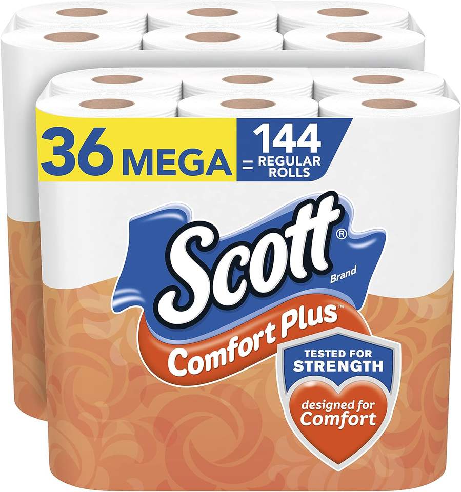 Scott ComfortPlus Toilet Paper, 36 Mega Rolls = 144 Regular Rolls, Bath Tissue, 462 Sheets Per Roll, White, 36 Count