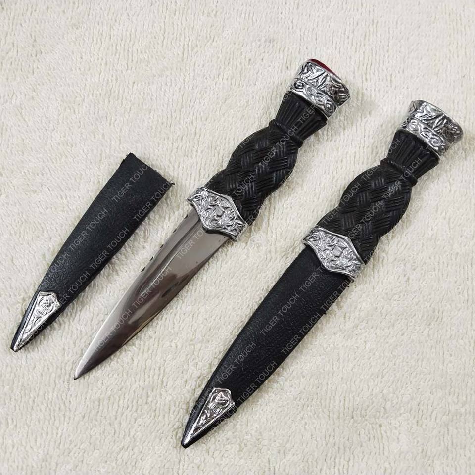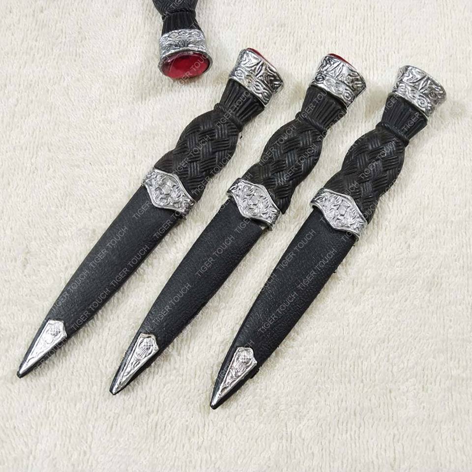 Scottish Highland Kilt Sock Dagger Thistle Sgian Dubh Dummy with Lace Decoration Metal Sheath TT-422