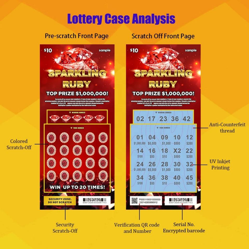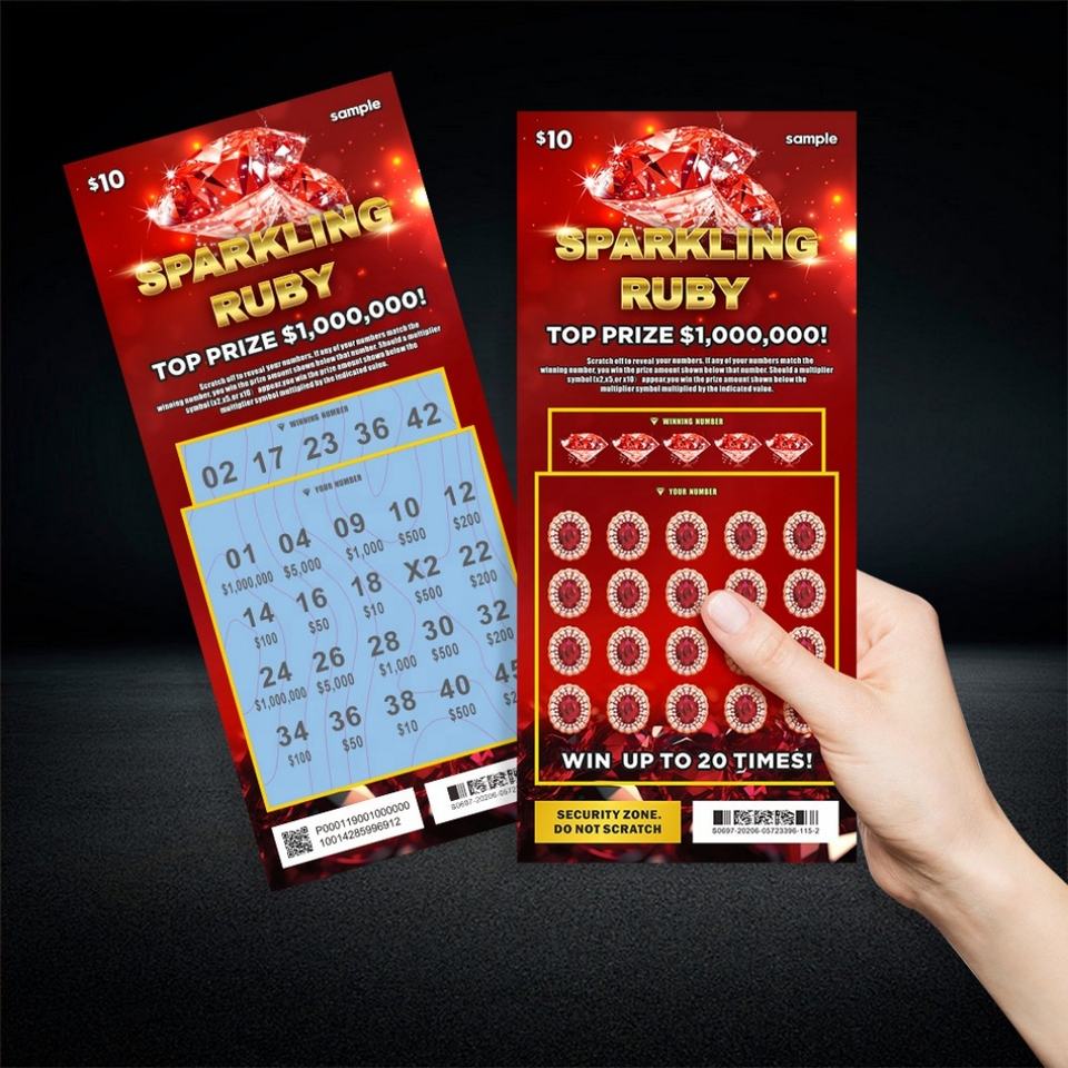 Scratch Lottery Ticket Shimmering Ruby Style Digital Printing Customized Winning Numbers Security Variable Data
