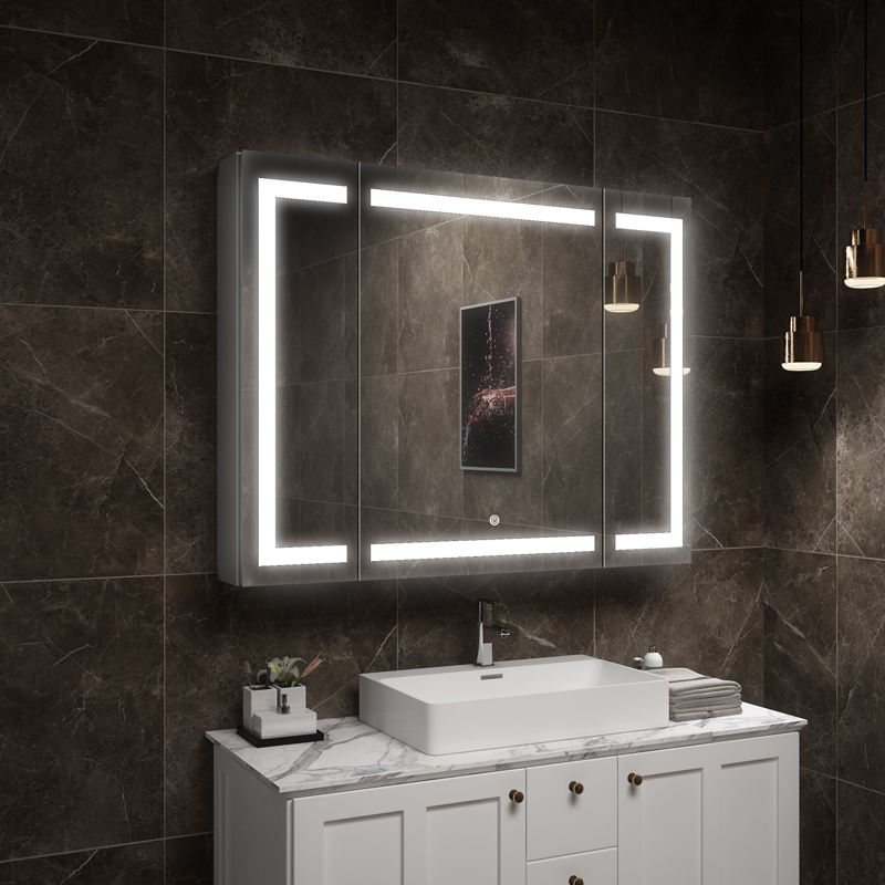 Aluminum and Glass Wall-mounted Screen Smart Mirror Cabinet with 50lb Capacity for Medicine Storage
