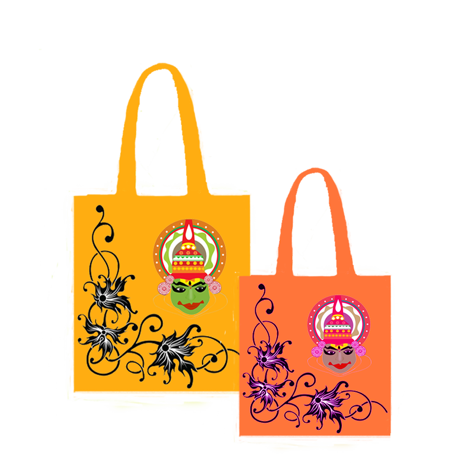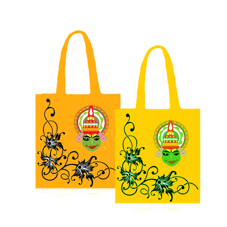 India-Made Yellow Cotton Tote Shopping Bag Screen-Printed Economically Priced Grocery Bag