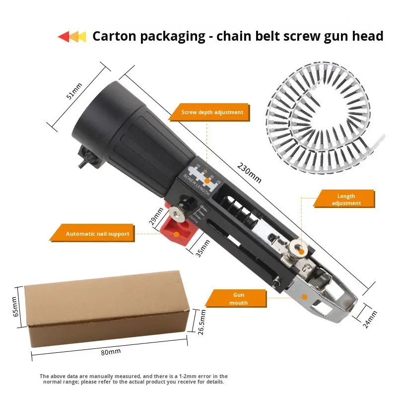 Screw Chain Coil Nail Gun Head for Woodworking and Plasterboard with 50 Nails 1.0kg