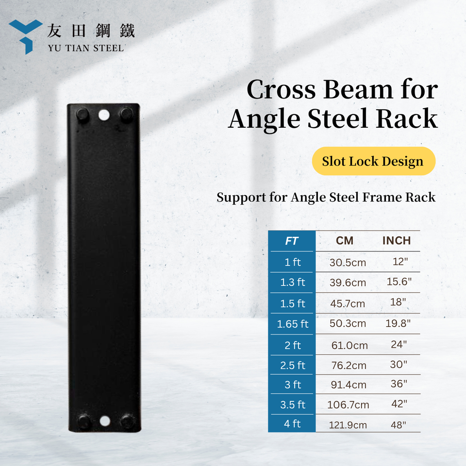 Screw-Free Matte Black Cross Beam for Warehouse Rack Heavy-Duty Steel Angle Support Bar Slot Lock Design Corrosion Protection