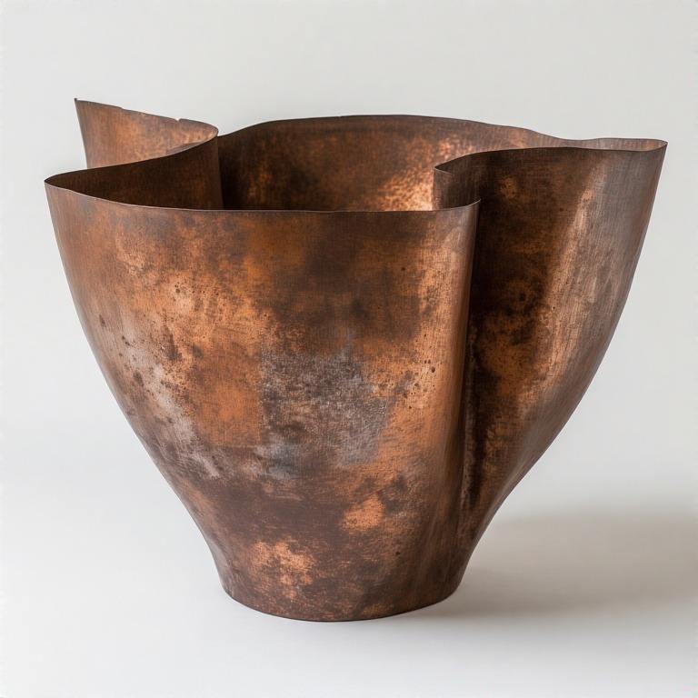 Scroll Handle Planter with Aged Metal Luster Embossed in Florid Baroque Patterns Ideal for Ornamental Greens or Seasonal Garden