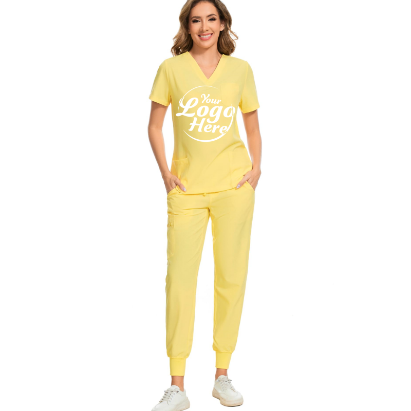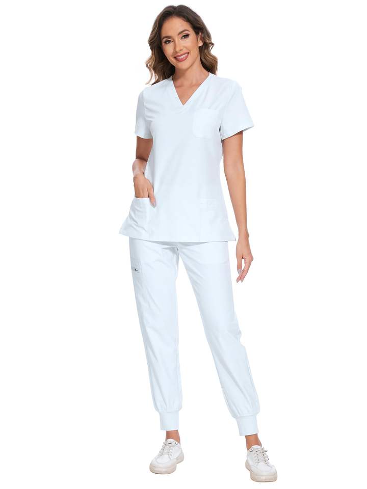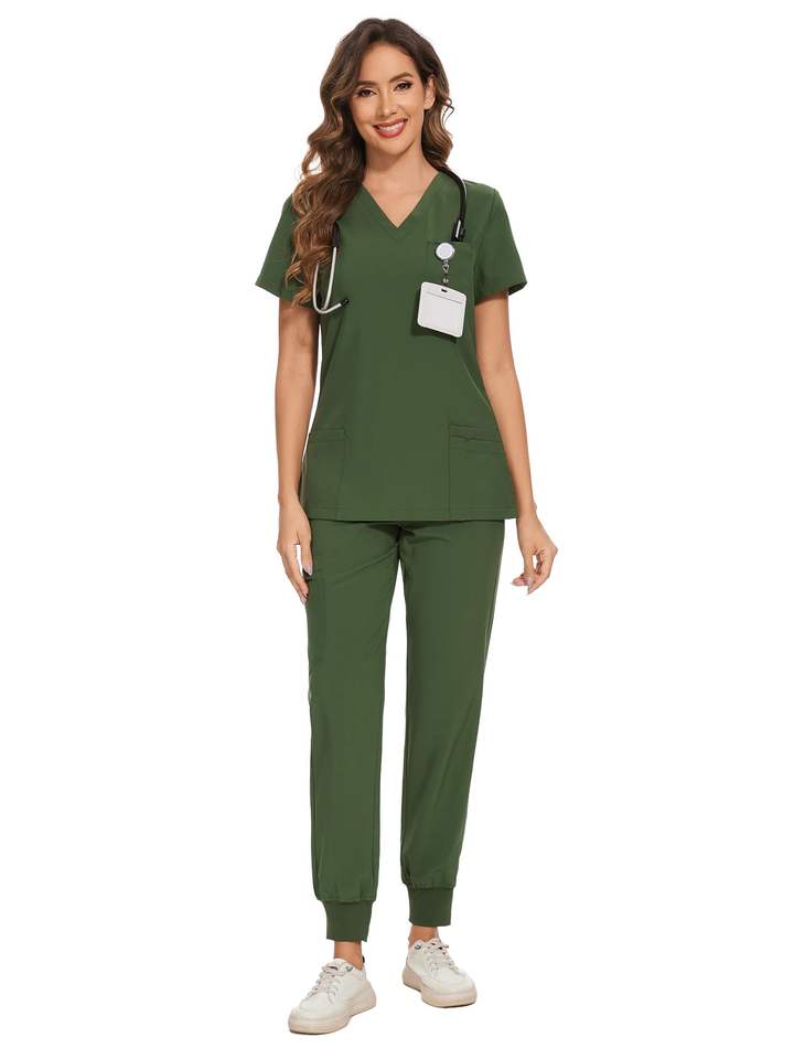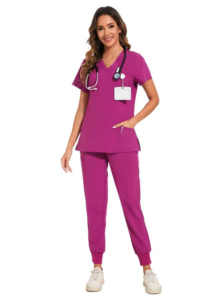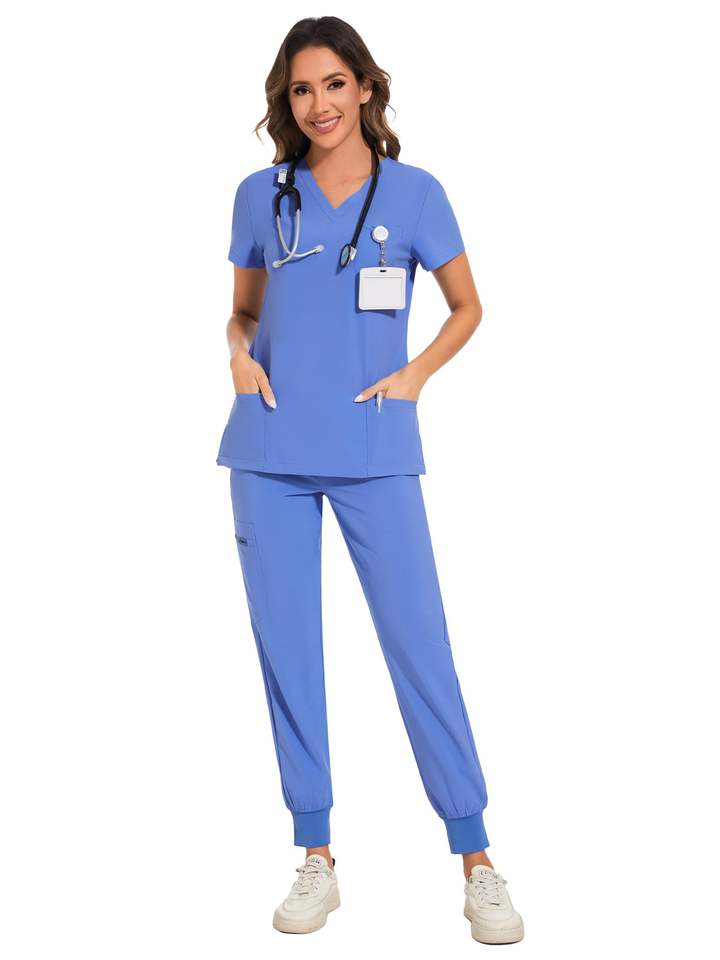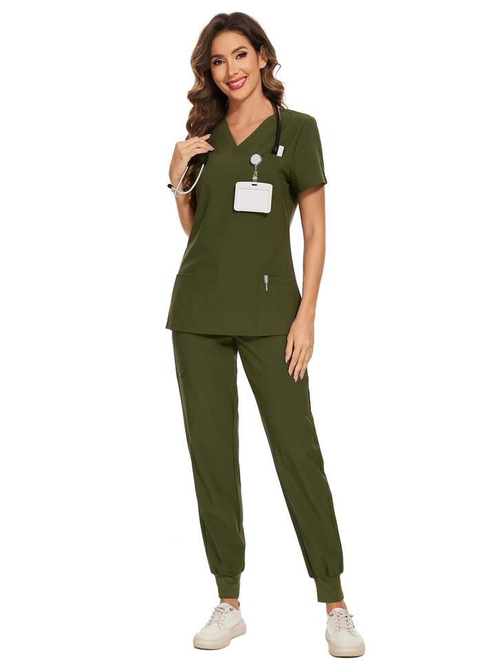Scrubs for Women Set Stretch V-Neck Women's Medical Design Scrub Sets Six Pocket Medical Scrubs (V-Neck With Cargo Pant)