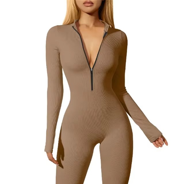 Scrunch Butt Lift One Piece Zipper Yoga Jumpsuit Shorts for Women Gym Bodysuit Pilates Fitness Workout Jumpsuit Cotton
