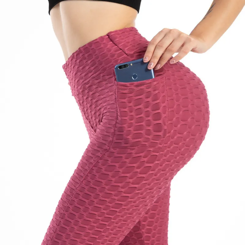 Scrunch Butt Lifting Textured Gym Leggings High Waisted Yoga Pants with Pocket Plus Size Workout Tummy Control Tights for Women