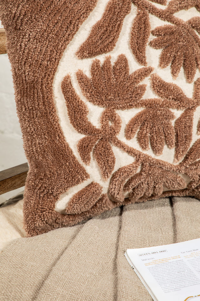 Sculpted Cotton Flex Tufted Pillow Cover with Embroidered Floral Pattern for Airbnb Hotels Resorts Homestay E-Commerce