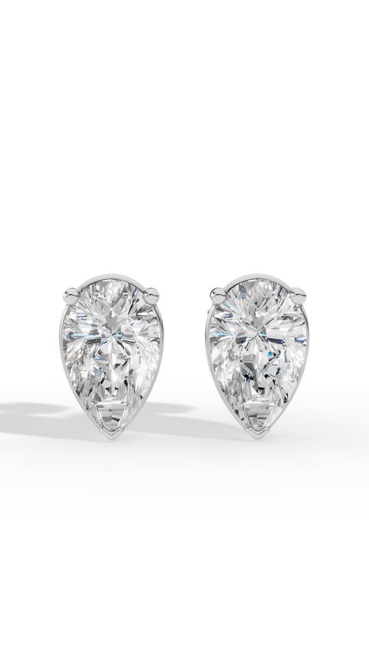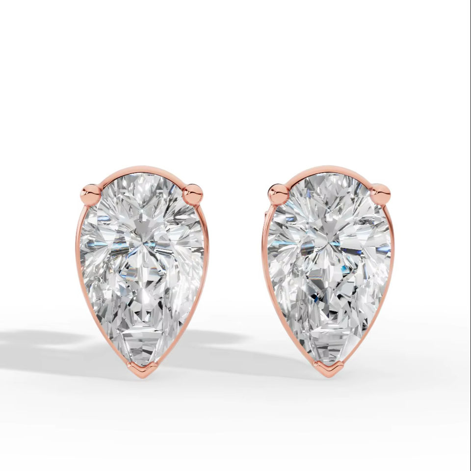 Sculpted Pear Cut Three Prong Solitaire Lab Grown Diamond Stud Earrings 14K Gold Luxury Fine Jewelry Wholesale Supplier