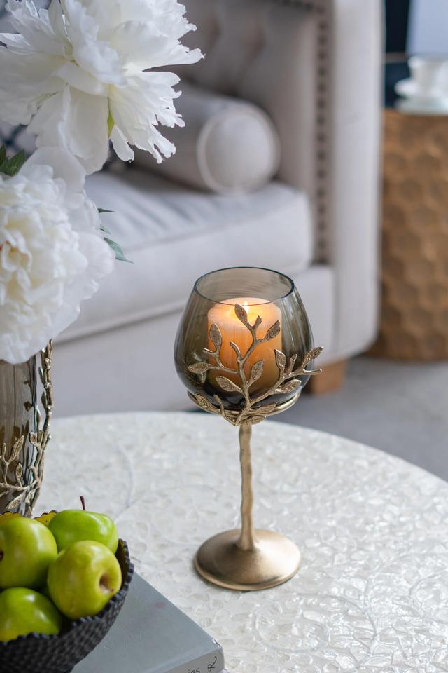 Sculptural Tree Branch Hurricane Candle Holder Christmas Easter Antique Gold Finish Organic Luxe Table Decor Heavy Weighted
