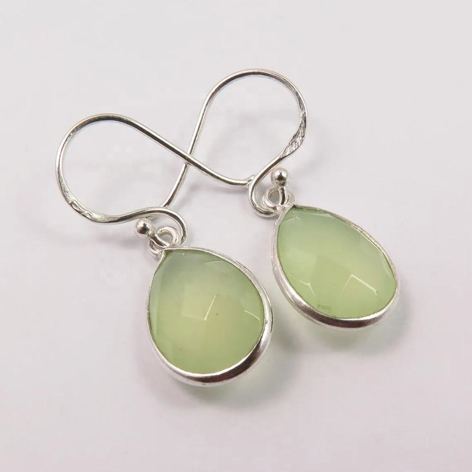 Sea Green Chalcedony Stone 925 Sterling Silver Both Side Checker Faceted Gemstone Hoop Earrings Handmade Jewelry From Supplier
