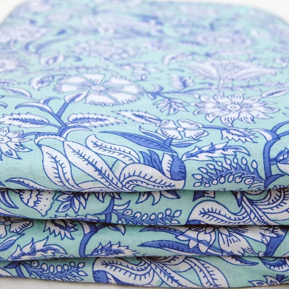 Sea Green Color Very Unique Beautiful Fabric Printed Hand Block Indian Printed Fabrics Wholesale 100% Cotton Women Fabric