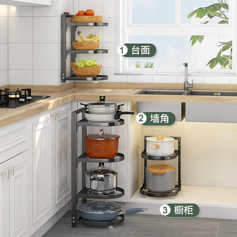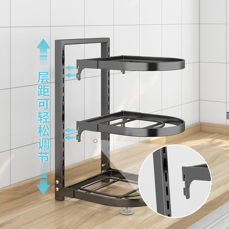 Sea Shark Kitchen Storage Rack Carbon Steel Round Multi Tiered Sink Pot Rack Adjustable Height For Cookware Storage