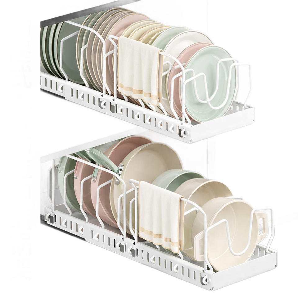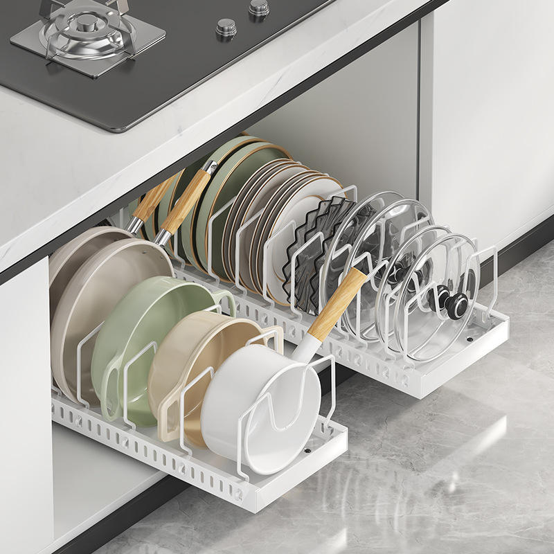 Sea Shark Retractable Cookware Rack Carbon Steel Multi Layer Pull Out Pot Storage Cabinet Organizer Kitchen Drawer Rack