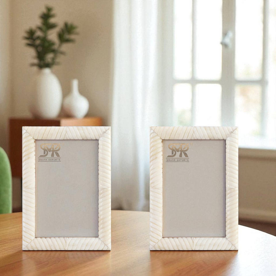 Sea Siren Ligeia Pattern Modern Handmade Bone Inlay for Photo Frame Cream Finish Tabletop Wall Mount Customizable Bedroom