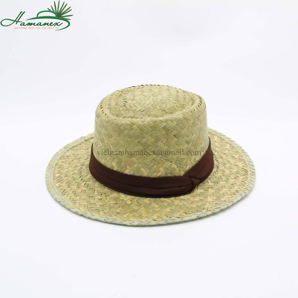 2023 New Version Sea Grass Straw Hat Embroidered Pattern with Brown Band for Daily and Travel Scenes