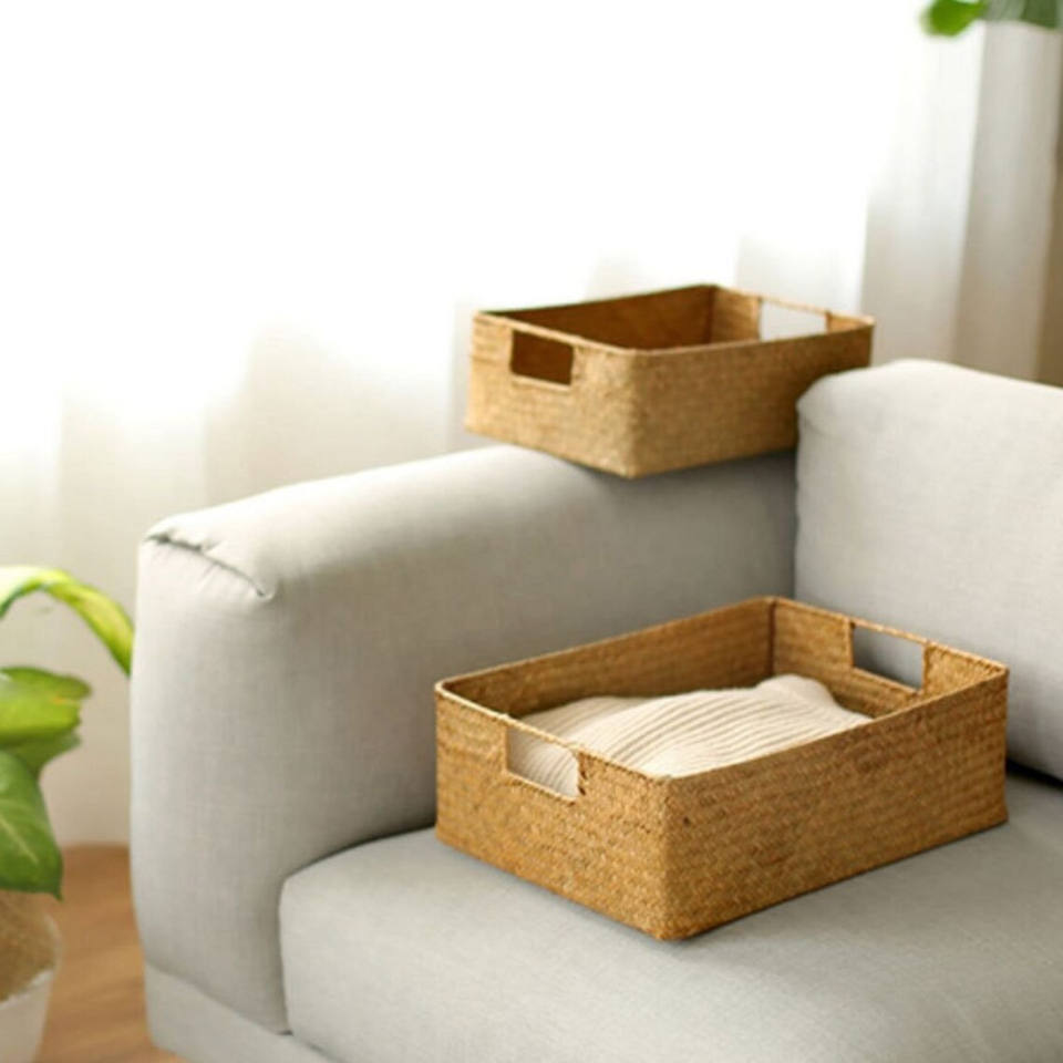 Seagrass Basket With Handle, Wicker Basket Box Container, Seagrass Storage Box, Woven Basket Straw Seaweed Basket