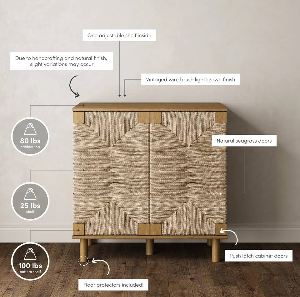 Product Name:Wood and Seagrass 2 Door Storage Cabinet
