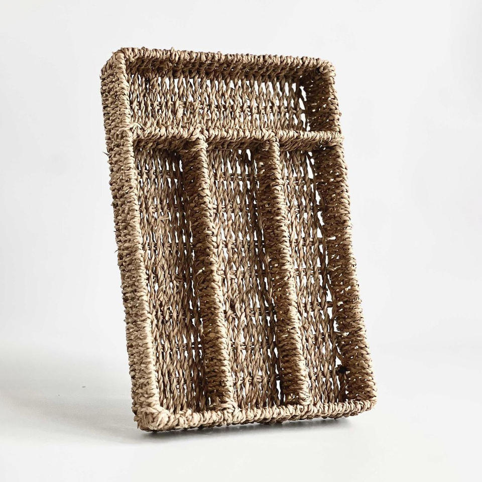 Seagrass Holder Divided Trays for Kitchen Utensils Extra Large Size Natural Utensil Holders Cutlery Storage Tray