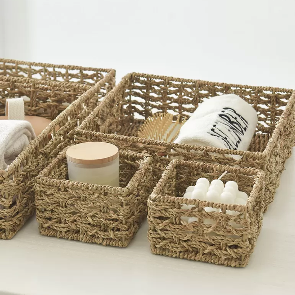 Rustic Seagrass Baby Storage Basket Handwoven Natural Home Decor Storage Organizer Hanging Function Back School Wholesale