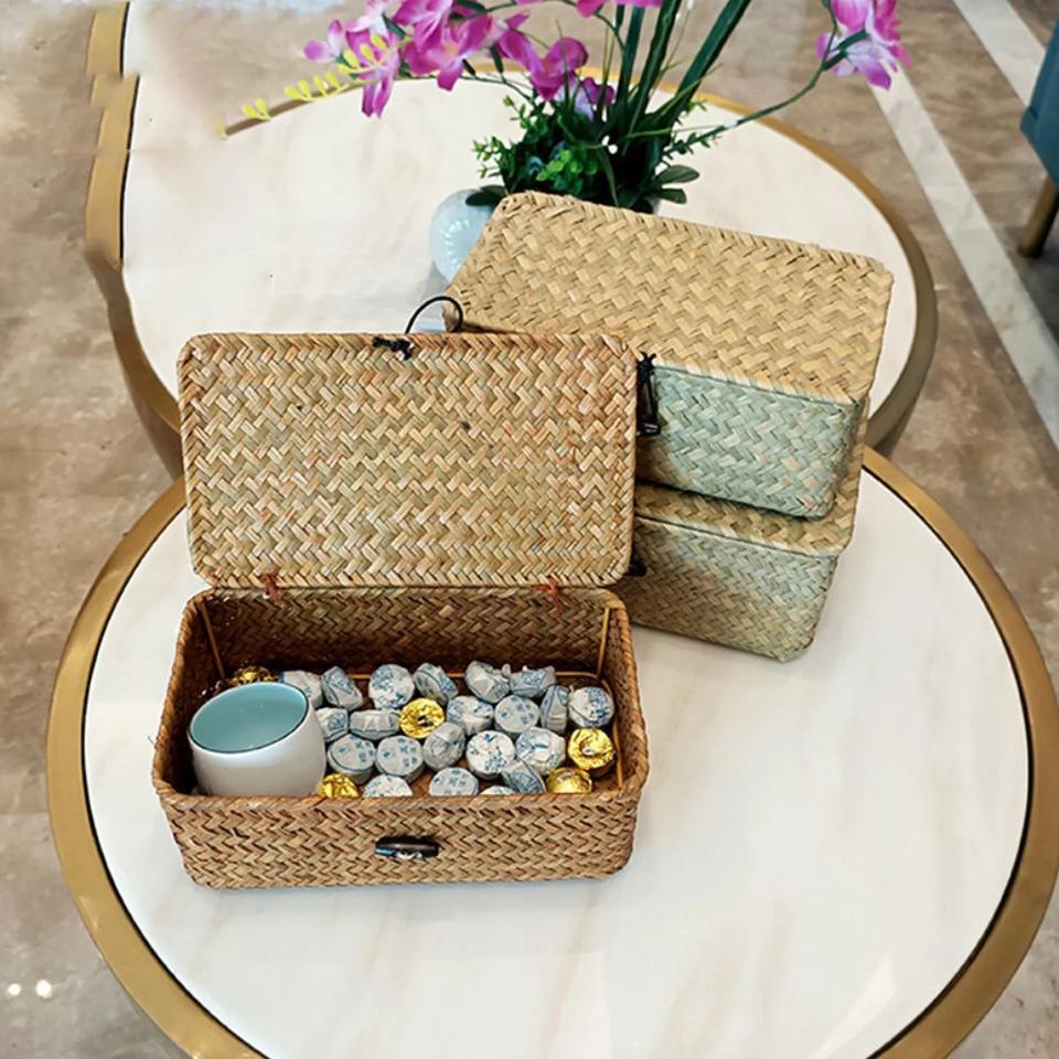 Seagrass Storage Baskets with Lid Cosmetic Straw Storage Box From Vietnam